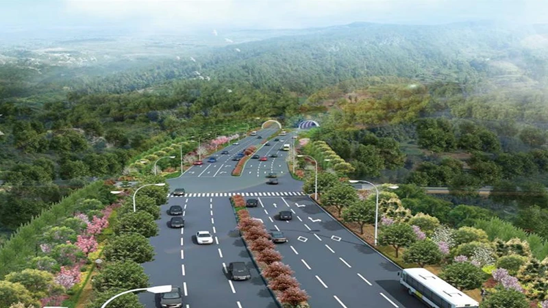 项目于2021年5月竣工,全长4.9公里,包含市政道路3.8公里,双线分离式隧道1座1.1公里,桥梁3座,暗涵3座,给水管线4.8公里,雨污排水管线12.8公里及绿化、照明、交通设施等